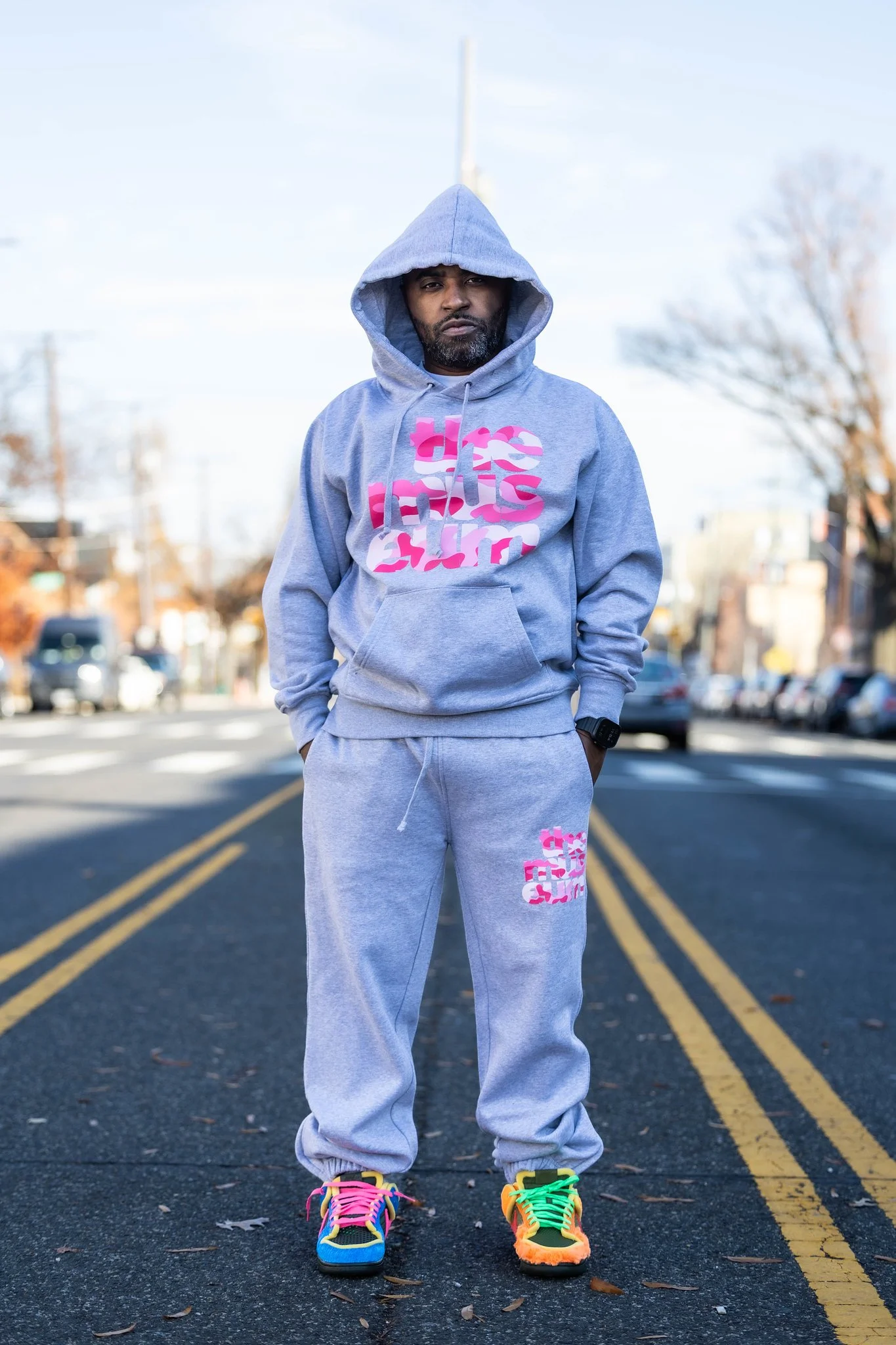Adult Museum Big Logo Camo Pink Hoodie Grey