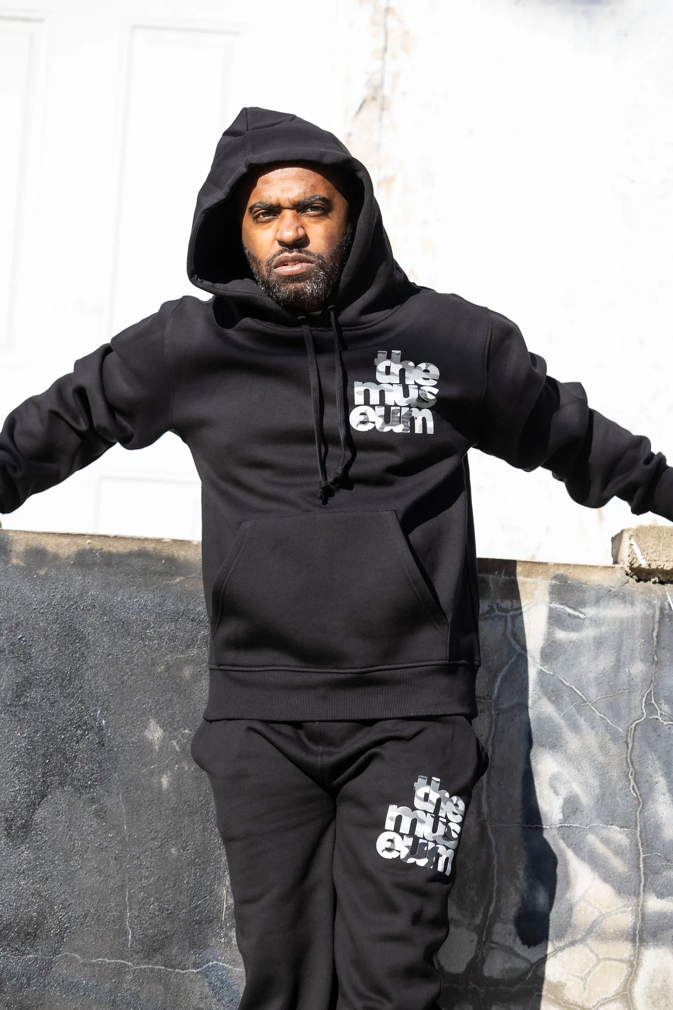 Adult Museum Logo Camo Grey/White Hoodie Black