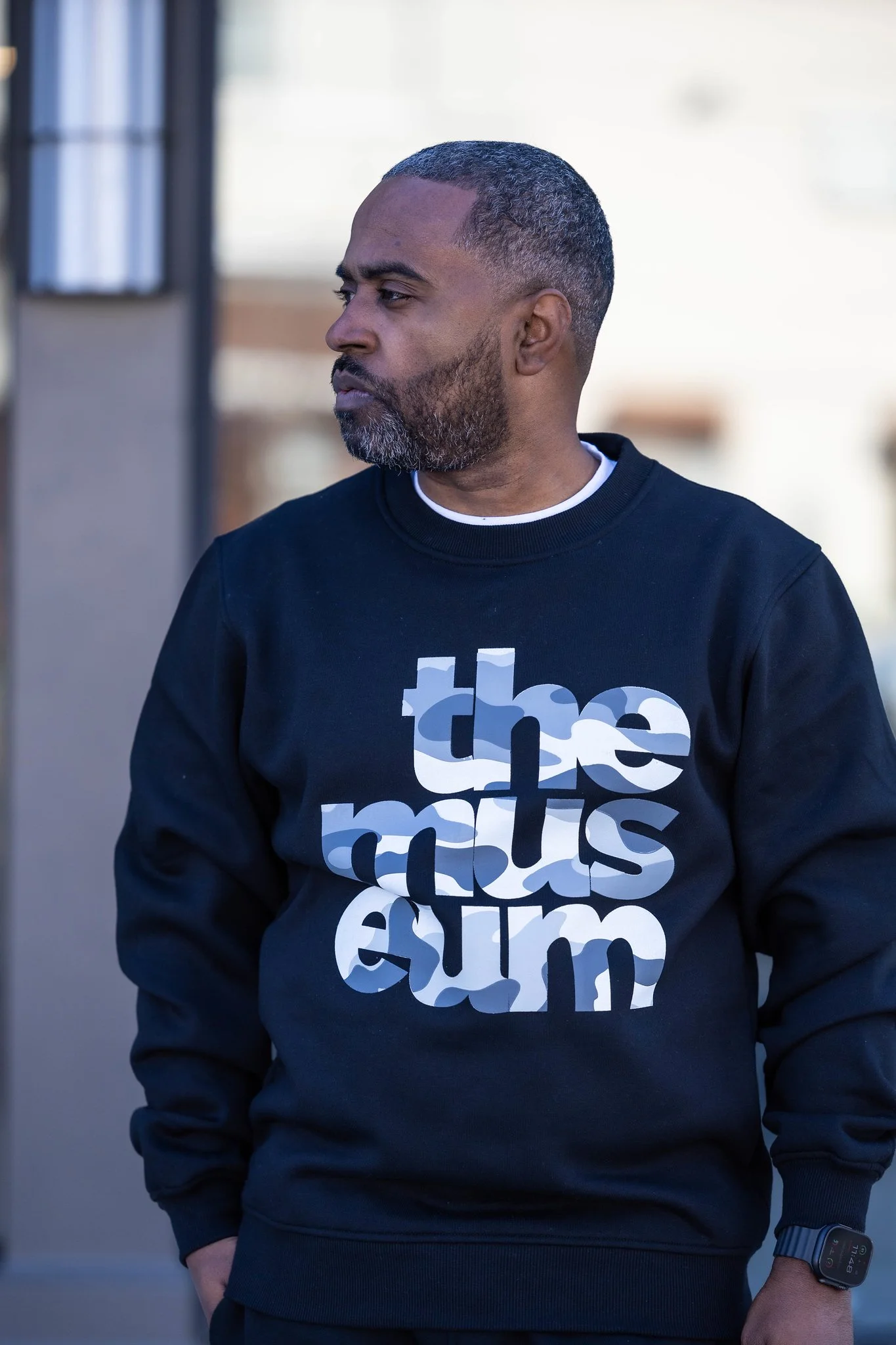 Adult Museum Big Logo Camo White/Grey Crewneck Black