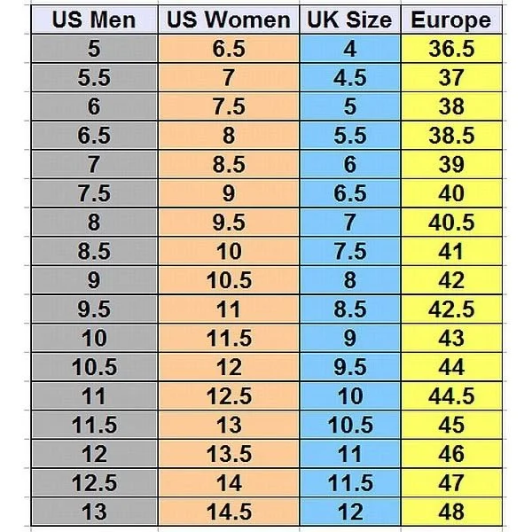 Size Chart in Photos These shoes are designed in men’s standard sizing and fit true to size, offering a comfortable and secure feel right out of the box. The interior features a cushioned insole and supportive structure to keep your feet comfortable for all-day wear. We recommend selecting your usual men’s size for the best fit.